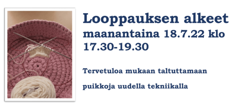 Tämä paja soveltuu aloittelijallekin, kun silmukat sujuvat oikein ja nurin. Opettelemme hieman sanastoa, käymme yhdessä läpi tekniikan ja saat apua kädestä pitäen.